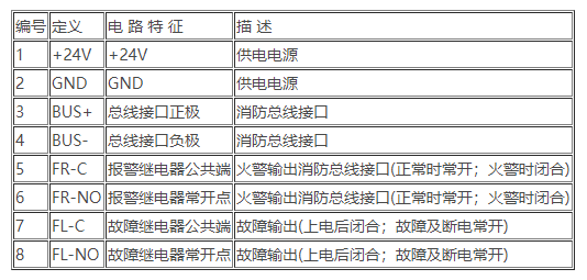 四.Flax51點(diǎn)型紫外火焰探測(cè)器接線方式所有信號(hào)線和電源線宜采用截面積大于1.0mm的導(dǎo)線,并嚴(yán)格按規(guī)范要求進(jìn)行布線,其中探測(cè)器外殼應(yīng)良好接地。探測(cè)器接線定義見(jiàn)下表: