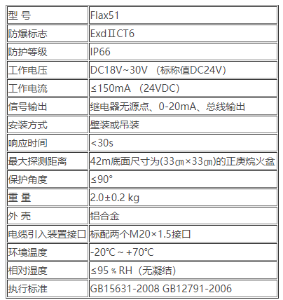 二.Flax51點(diǎn)型紫外火焰探測(cè)器技術(shù)參數(shù)